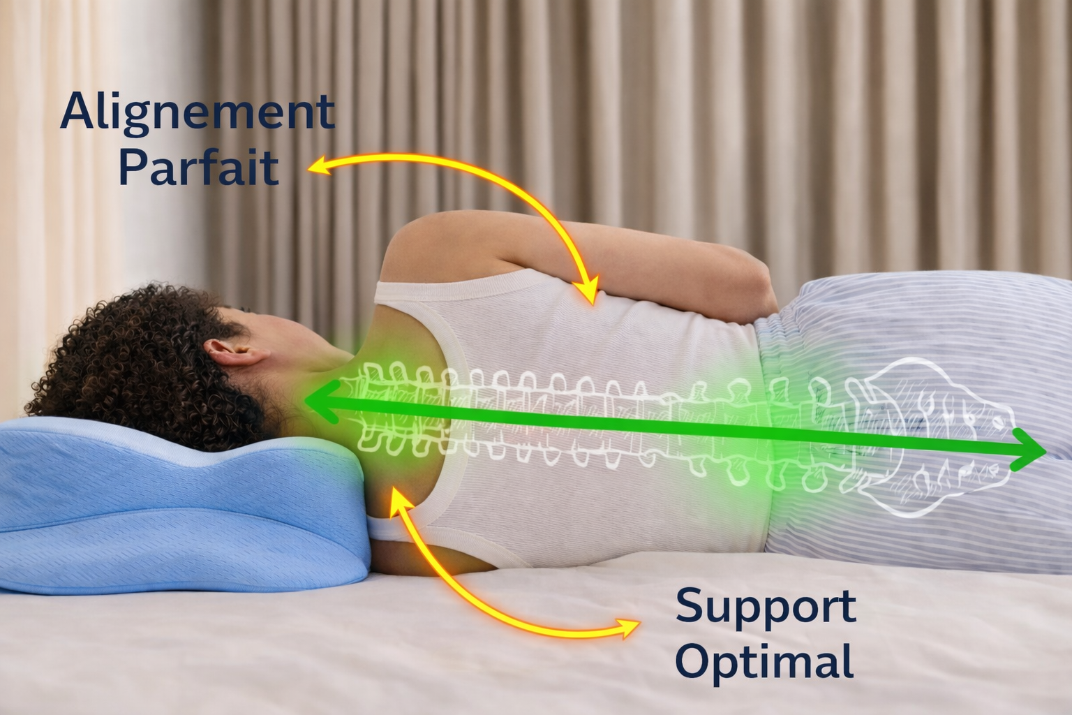 Un oreiller inadapté peut désaligner la nuque, exercer une pression sur les cervicales et provoquer des tensions qui apparaissent dès le réveil.