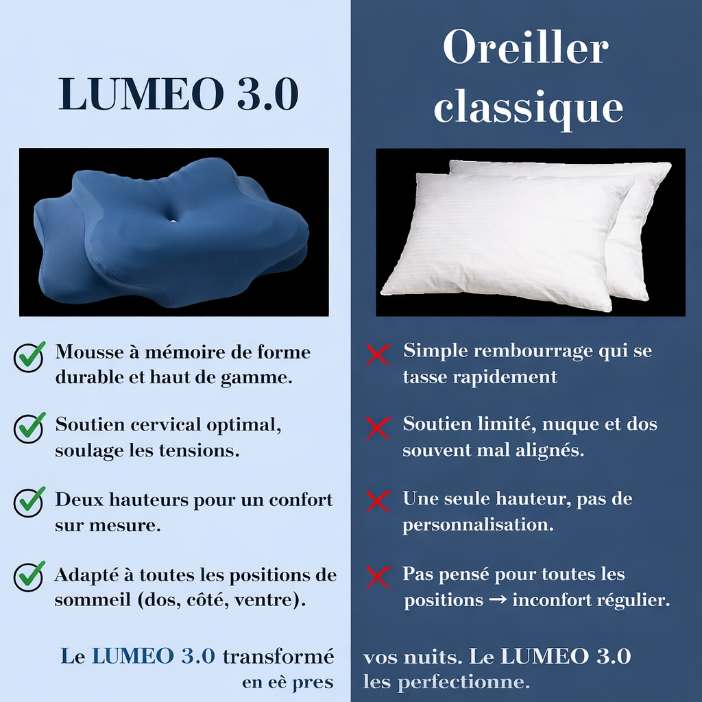 “Je recommande l'oreiller orthopédique Lumeo à tous mes patients ! Il offre un soutien parfait pour la tête et le cou, améliorant la qualité du sommeil et réduisant les douleurs cervicales. Un incontournable pour un sommeil réparateur.”
